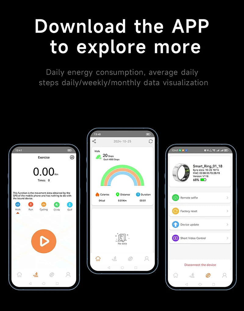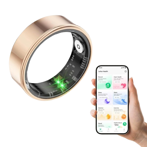 Holdify's Smart Ring Fitness Tracker brings cutting-edge technology to your fingertips, helping you monitor vital body insights like oxygen levels, blood pressure, sleep patterns, and heart rate—all while enhancing your workout sessions by tracking performance seamlessly.